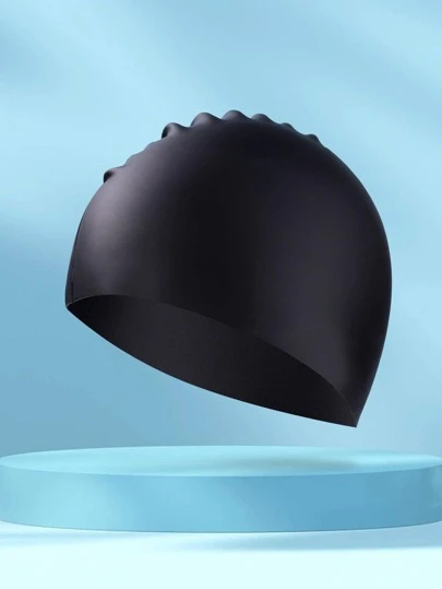 1pc Silicone Swimming Cap - Black - View 1