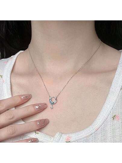 1pc Silver Dreamy Starry River & Moon Pendant Necklace For Women, Versatile Tarnish-Resistant Clavicle Chain - Silver - View 1