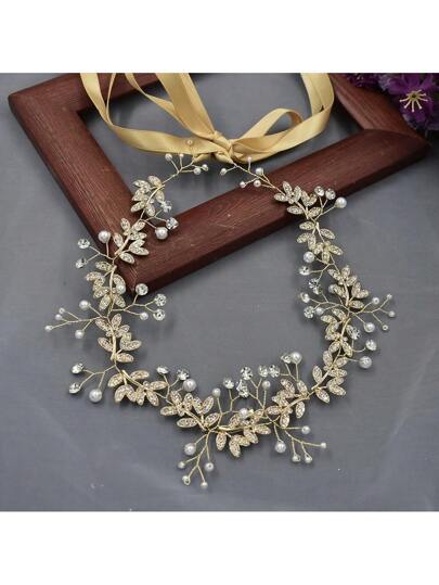 1pc Silver/Gold Tone Alloy Leaf Wedding Waist Belt, Handmade Fashionable Bridal Belt, Women's Accessory, Suitable For Wedding, Ball, Beauty Pageant And Other Occasions - Gold - View 1