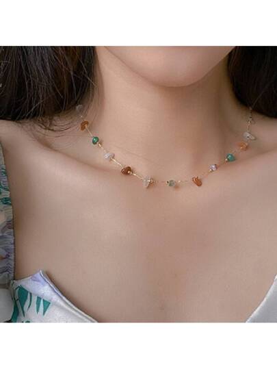 1pc Simple & Fashionable & Versatile & Uncommon Geometric Colorful Asymmetrical Stone Necklace, Suitable For Women To Wear - Silver - View 1