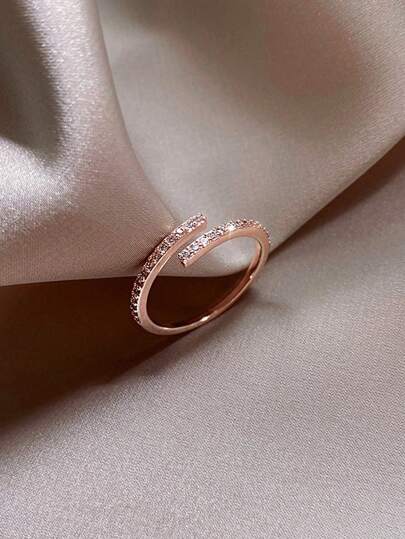 1pc Simple Elegant Rhinestone Adjustable Open Ring, Suitable For Women's Daily Wear - 1 - View 1