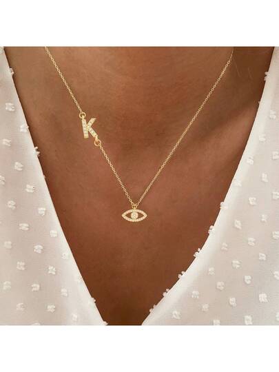 1pc Simple Fashion Initial Eye Pendant Golden Stainless Steel Chain Necklaces For Women - Yellow Gold - View 1