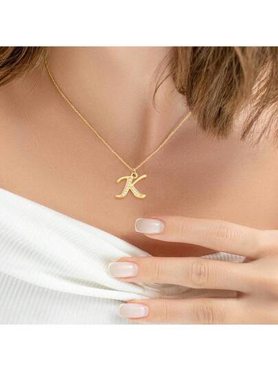 1pc Simple Initial Pendant Golden Stainless Steel Chain Necklaces For Women - Yellow Gold - View 1