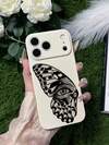 1pc Matte Beige TPU Shockproof Colorful Demon Eye & Butterfly Pattern Phone Case For IPhone 15 Pro Max/16 Pro Max/17 Pro Max