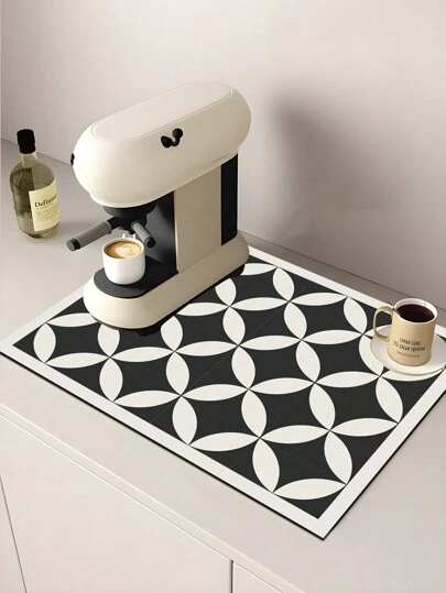 1pc,Simple Style Black And White Coffee Machine Diatom Mud Drainage Pad, Soft Rubber Drain Pad, Non-Slip Super Absorbent And Wear-Resistant Dish-Washing Dry Pad, Placemat For Countertop Dining Kitchen Table Mat, Courtyard Table Decoration, Household Kitchen Supplies - Multicolor - View 1