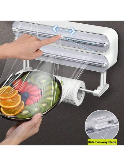 1pc Single/Double Layer Wrap Cutter, Foil/Wrap Dispenser With Wall Mount & Magnetic Holder, Adjustable Kitchen Wrap Organizer Box,Kitchen Storage,Kitchen Organizer,Kitchen Organiser,Storage Items,Kitchen,Storage,Organizer,Organiser,Organization,Organizers,Drawer Organizer,Travel,Kitchen Items,Kitchen Utensils,Kitchen Tools,Kitchen Things. - Multicolor - View 1