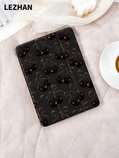 1pc Sketchy Pixel Cherry Pattern Tablet Protective Case With Pencil Slot, Shockproof, Tri-Fold Tablet Stand Protective Shell, Compatible With 10.2", Pro 11" 2021/2020/10th Gen, (A16) 11" 11th Gen 2025, 8th/9th/10th Gen, Galaxy Tab A8 10.5" 2022, Matepad 10.4"/Tab, Romantic Gift - Multicolor - View 1