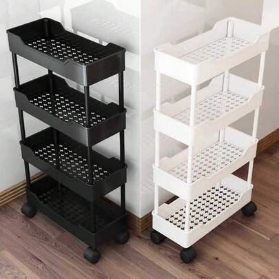 1pc Slim Slide-Out Storage Cart, Multi-Tier Organizer, Sectioned Storage, Movable, Flexible Push-Pull, Easy Assembly, Sturdy Load-Bearing, Waterproof & Moisture-Proof, Easy To Clean, Space-Saving, Open Access, Suitable For Kitchen, Bathroom, Living Room, Bedroom, Movable Floor Slim Utility Cart - Multicolor - View 1