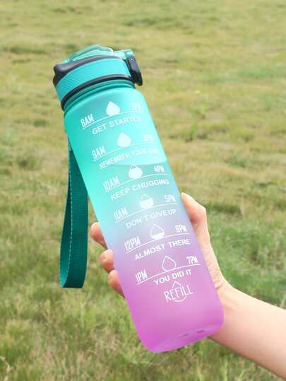 1pc Slogan Graphic Water Bottle - Green - View 1