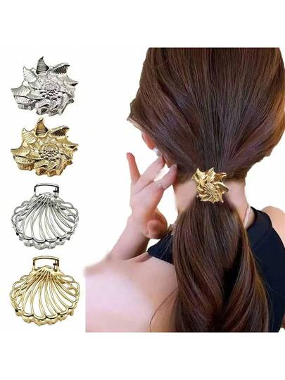 1pc Small & Large Size Women Gold Starfish, Shell, Conch Design Elegant Fashion Metal Hair Claw Clips, Suitable For Women Beach Vacation Hairstyle, Holiday Gift Hair Accessories - Special Shaped Screw Claw Clamp - View 1