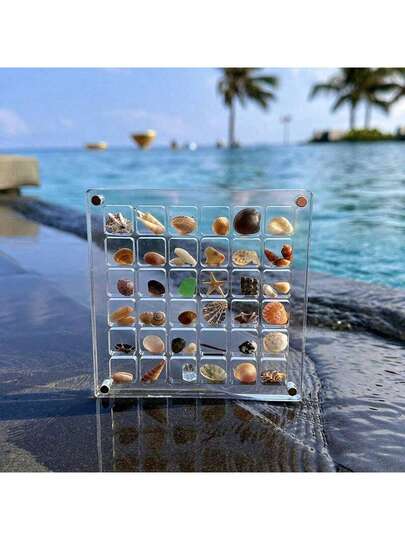 1pc Small Multi-Compartment Seashell Storage Box, Acrylic Square Container For Shell Nail Art Display, Transparent And Thick Acrylic Showcase - Transparent - View 1