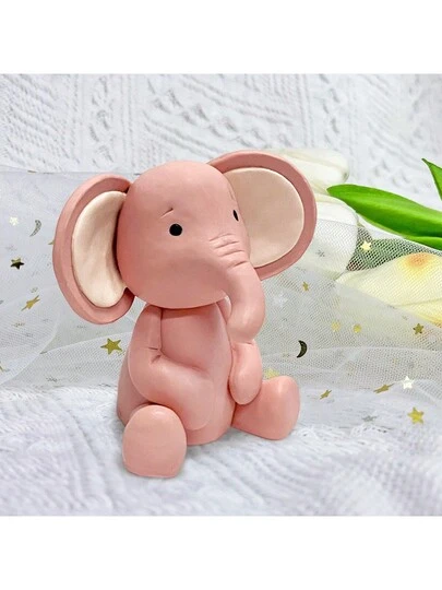 1pc Soft Clay Pink Elephant Cake Decoration, Animal Cake Topper For Birthday & Theme Party(gender Reveal) - Dusty Pink - View 1
