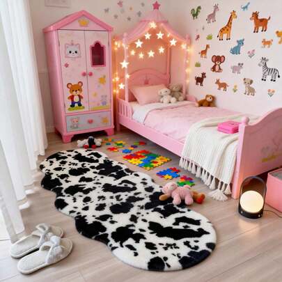1pc Soft Faux Fur Asymmetrical Cow Print Rug, Suitable For Living Room, Bedroom, Bathroom Or Kitchen Home Decor, 1-5cm Trimming Tolerance, New Year Decoration, Soft And Skin-Friendly - Multicolor - View 1