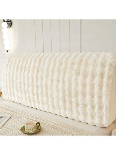 1pc Soft Plush Headboard Cover, Warm Dust-Proof Headboard Protector, Decorative Headboard Cover For Winter - White - View 1