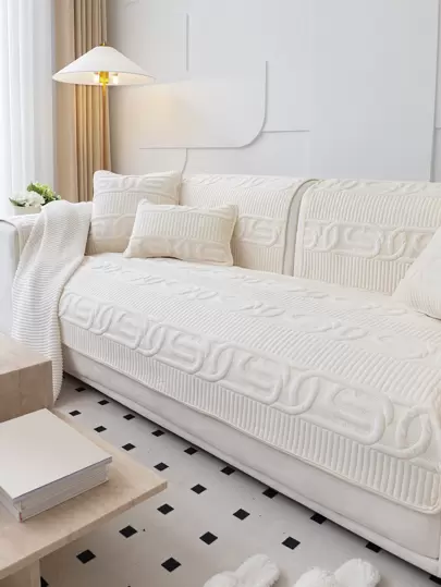 1pc Solid Non-slip Sofa Towel - White - View 1