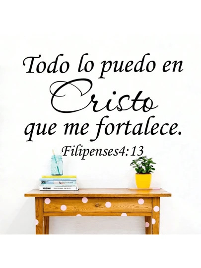 1pc Spanish Bible Philippians 4:13 Inspirational Quote Wall Sticker, Christian Jesus Adhesive Wall Art Mirror Stickers Waterproof  Decal Stickers For Bedroom, Living Room Home Decor - Multicolor - View 1