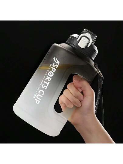 1pc Sports Water Bottle Large Capacity Tumbler Plastic Drinking Cup For Gym And Fitness Use - Black - View 1