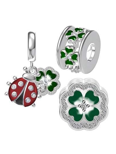 1pc Spring Original Design Four-Leaf Clover Beaded St.Patrick's Day 925 Silver Plated Charm For Diy Necklace, Bracelet Making, Birthday & Holiday Gift - Four Leaf Clover - View 3