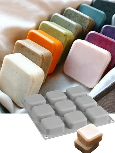 1pc Square Cornered Rectangular Silicone Soap Mold - 9 Cavities - Square Silicone Mold, Plaster Mold, Silicone Mold - Grey - View 11