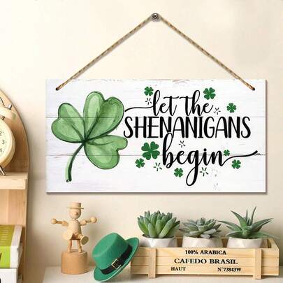 1pc St. Patricks Day Wood Decor Sign, Let The Shenanigans Begin Printed Wood Wall Art Sign, Home Signs Decor, Hanging Door Wood Sign, Shamrock Sign, St Patricks Day Decor, Rustic Farmhouse Decor - Multicolor - View 1