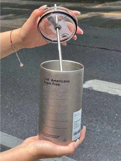 1pc Stainless Steel Double Wall Vacuum Insulated Coffee Cup With Straw, Reusable Tumbler For Iced Coffee, Suitable For Parties, Gatherings, Weddings, Holidays - Multicolor - View 9