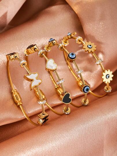 1pc Stainless Steel Gold Bangle Bracelet With Lucky Blue Evil Eye Charm, Fashionable Jewelry For Men And Women - Gold - View 5