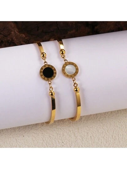 1pc Stainless Steel Gold Color Roman Style Natural White & Black Shell Bracelet, Classic Fashion Design - Natural Shell Bracelet - View 1