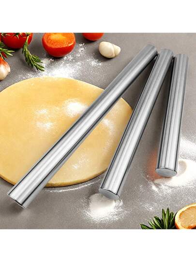 1pc Stainless Steel Rolling Pin 3 Sizes - Hollow Lightweight Dough Roller For Baking , Pies & Pizza - Home Kitchen & Restaurant Baking Tools - Stainless Easy Clean Durable Pastry Roller - Silver - View 1