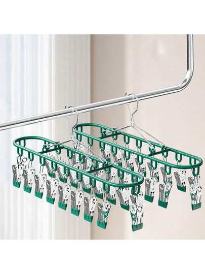 1pc Stainless Steel Sock Clip With 10-20 Clips, Balcony Drying Rack, Multi-Clip Stainless Steel Anti-Wind Anti-Slip Underwear Clothes Drying Rack Clothespins - Multicolor - View 1