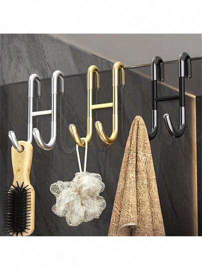 1pc Stainless Steel Towel Hook, Punch Free Bathroom Partition Hook, Heavy Duty Hook Rack For Robe, Towel, Over The Door Hook For Bathroom, Kitchen Multi-Scale Use, Bathroom Accessories - Multicolor - View 1