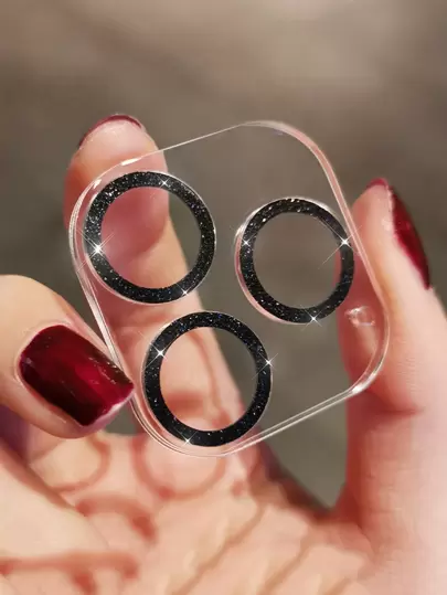 1pc Starry Sky Glitter Integrated Lens Film, Compatible With Apple 15 Pro Max, Bling Rhinestone Rear Camera Protective Film - Black - View 1