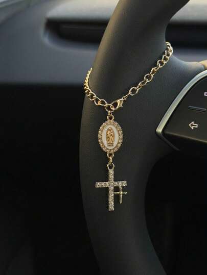 1pc Steering Wheel Rhinestone Decor, Adjustable Length, Shiny, Minimalist, Cute, Creative Car Charm Accessory - 15cm - View 1