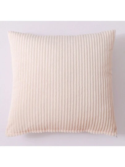 1pc Striped Throw Pillow Cover, Solid Color Cushion Cover - Beige - View 1