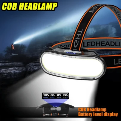1pc Super Bright COB Fishing Headlamp, Portable Work Light For Outdoor Camping, With White & Red Light, Battery Level Display - Multicolor - View 1
