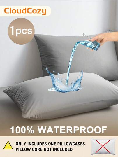 1pc Super Soft Comfortable Waterproof Pillowcase , Pillow Protector, Without Filler, White Simple Bed Pillow Cover For Bedroom - Grey - View 1