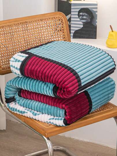 1pc Super Soft & Cozy Color Block Checkerboard Knit Throw Blanket - Vibrant Green, Camel, Gray & Red/Blue Striped Checkered Design, Suitable For Sofa, Bed Or Couch - Lightweight Flannel, 260gsm, Machine Washable, Bohemian Style, All Season - Red and Blue Plaid - View 1