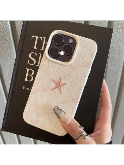 1pc TPU Material Pink Elegant Starfish & Shell Pattern Full Screen Phone Case, Compatible With Iphone/ Phones - White - View 1