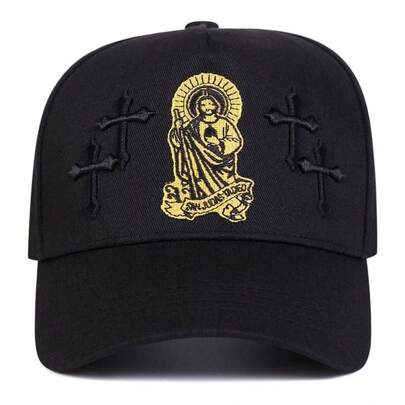 1pc Theme Embroidery Baseball Cap, Black/White With Virgin Mary/Cross/Praying Hands Design Casual Hat - XY - View 1