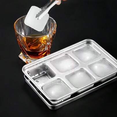 1pc Thick Stainless Steel Ice Cube Tray, Square Ice Mold With Lid, Easy Release Fast Freezing - Multicolor - View 6