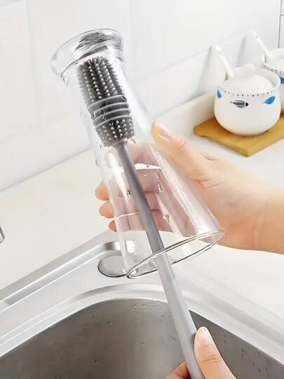 1pc,Thoroughly Clean Every Part Of The Cup With A Long Handle Silicone Brush - Grey - View 1