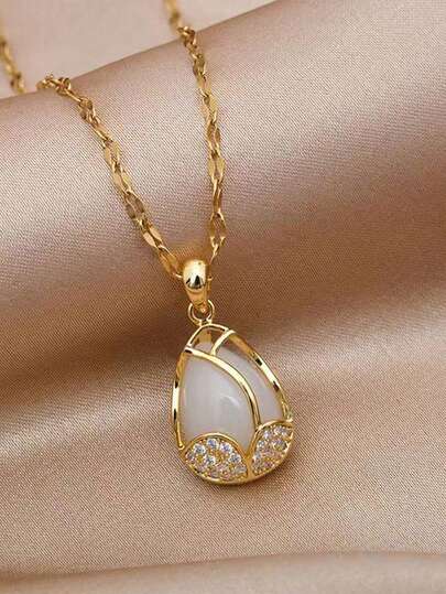 1pc Titanium Steel Tulip Necklace, Popular Design Won't Fade, High-End Women Clavicle Chain, Hypoallergenic, Suitable For Daily Wear And Parties - Gold - View 1