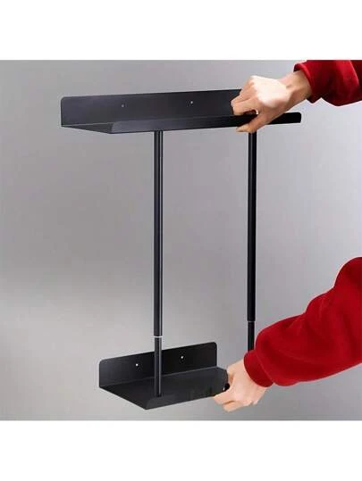 1pc Towel Rack With Shelf For Bathroom, Wall Mounted Towel Holder With Hooks, Storage Rack For Rolled Towel, Bathroom Accessories,Scalable, Adjustable, Towel Storage Rack - Black - View 2