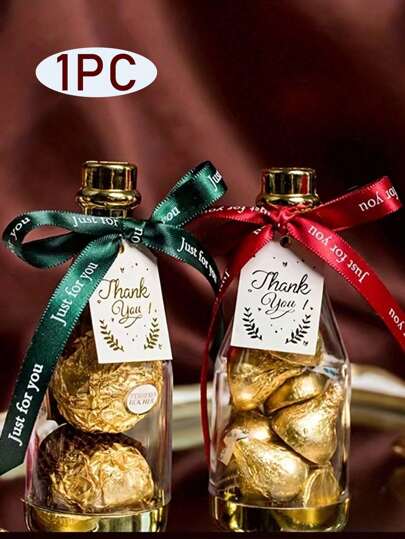 1-5pcs Clear Bottle Candy Box With Ribbon, Champagne Bottle Candy Container Lightweight,Small Champ,Transparent Champagne Bottle & Candy Box Liquor Bottle, Champagne Bottle Boxes, Candy Gift Plastic Party Favors, Wedding, For Giveaways, Party Favor Box, Creative Clear Wedding Champagne Bottle, Christmas Candy Storage Bottle, Wedding Thank You Gifts (Note: Ribbon Letters Shipped Randomly.) - View 1