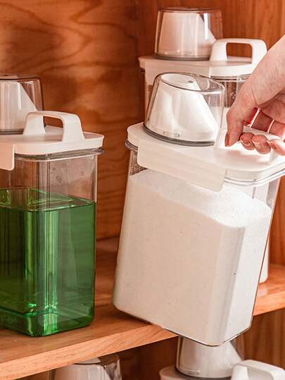 1pc Transparent Laundry Powder Storage Box, Laundry Detergent & Accessories Organizer Container With Measuring Cup - White - View 1