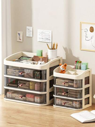 1pc Transparent Stackable Storage Box, Minimalist Desk Organizer Drawer Cabinet, Desktop Storage & Display Box, Cosmetic & Jewelry Organizer, Bathroom Makeup Drawer Storage Box, Personal Care Items & Organizer Box, Small Accessories Holder For Hair Ties, Scrunchies, Jewelry - Multicolor - View 1