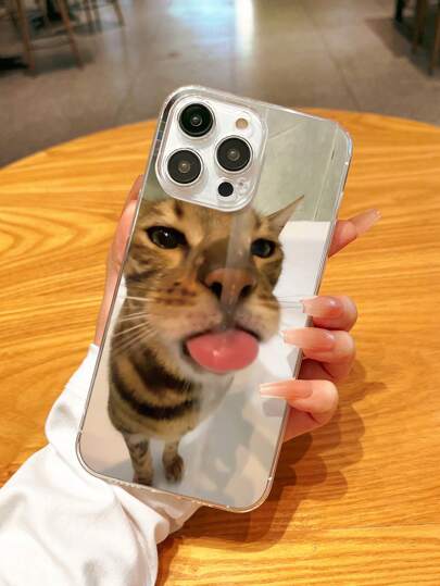 Cute Stuff 1pc Transparent Tpu Full Coverage Phone Case With Funny Cat Drinking Water & Sticking Out Tongue Pattern, Compatible With Iphone 15/14/13/12/11 - Multicolor - View 1