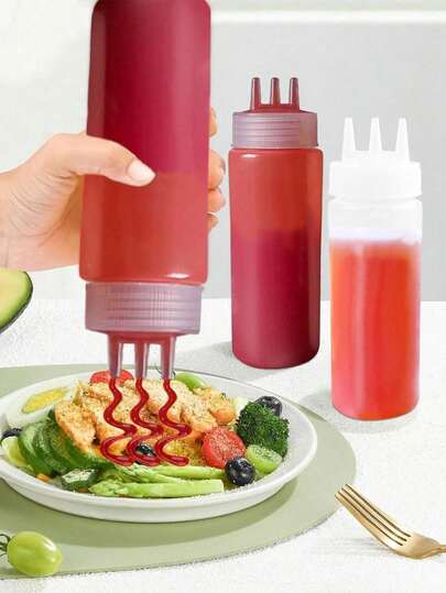 1pc Tri-Hole Squeeze Sauce Bottle, Salad Dressing & Honey Dispenser, Baking & Cooking Kitchen Gadget, Practical Gift For Valentine's Day, New Year, Mother's Day, Graduation - Multicolor - View 1