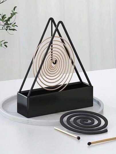1pc Triangle Mosquito Coil Holder Hanging Tray, Creative Home Use Mosquito Coil Box, Incense Burner For Summer - Black - View 1