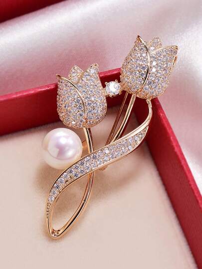 1pc Tulip Shaped Brooch, High-End Luxury Fashion Ladies Elegant Accessory - A - View 1