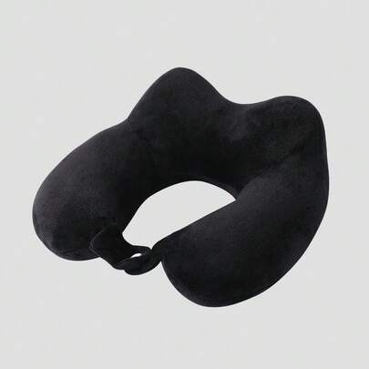 1pc U-Shaped Travel Neck Pillow, Office Nap Neck Support Pillow, Cartoon Cat Ear Neck Pillow, Portable Travel Neck Cushion - Black - View 1